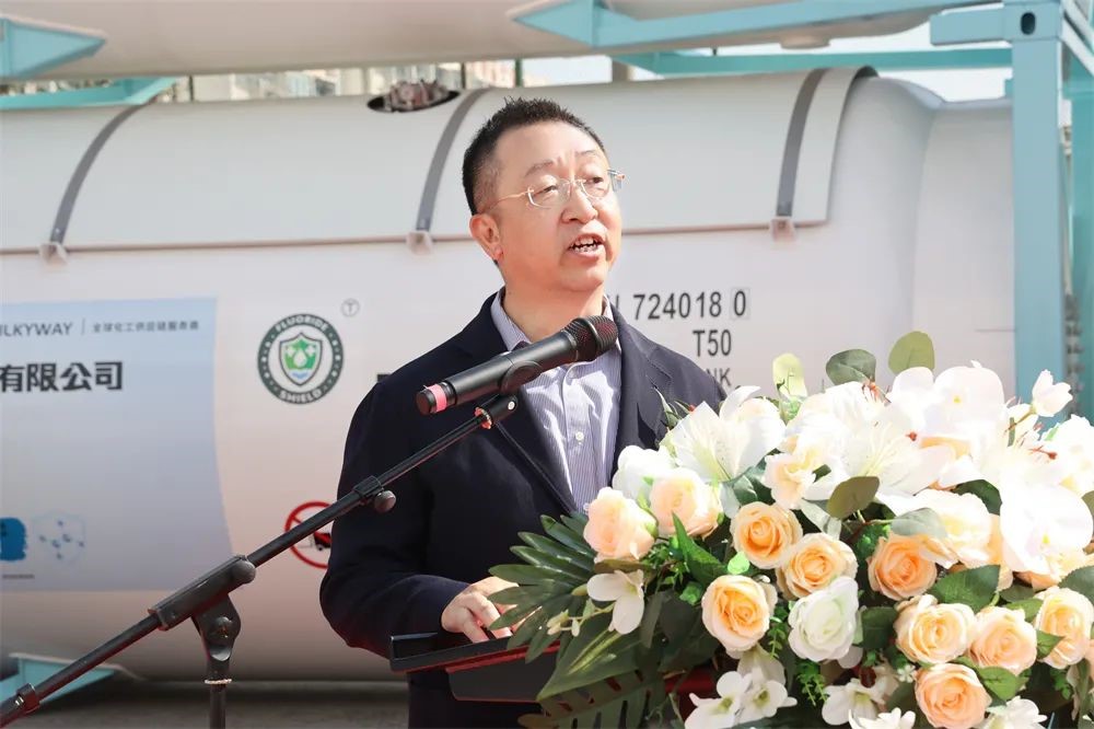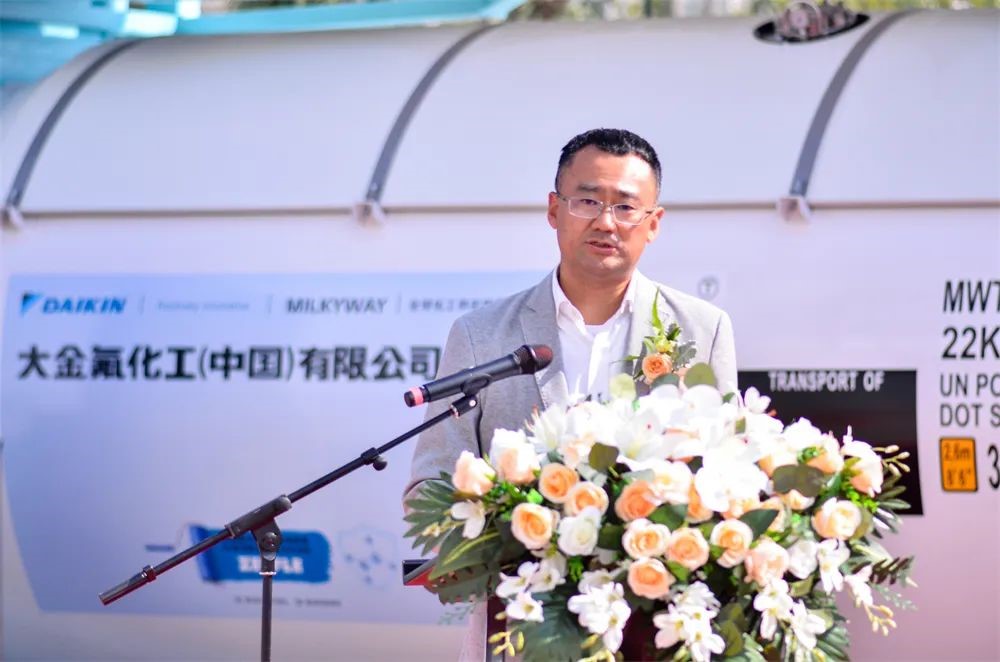 上午10點(diǎn)58分,下線儀式準(zhǔn)時(shí)開始,中集環(huán)科季國祥總經(jīng)理代表制造商致辭,他表示,密爾克衛(wèi)、大金氟化工、中集環(huán)科分別作為化工倉儲(chǔ)物流、精細(xì)化工、能源化工物流裝備領(lǐng)域的佼佼者,不忘各自肩負(fù)的使命和責(zé)任,敬畏環(huán)境,敬畏生命,在綠色發(fā)展、低碳發(fā)展、可持續(xù)發(fā)展方面取得了令人驕傲的成績,作出了敢想敢為的表率。本次下線的氣體箱產(chǎn)品采用了創(chuàng)新的新材料、新工藝,在筒體和框架采用了大金氟化工新一代4F型高固體分、低VOC環(huán)保氟碳樹脂油漆,具有超長耐候、優(yōu)良的防腐性能;同時(shí),罐內(nèi)也率先采用了氟盾水性漆,與傳統(tǒng)的鍍鋅工藝相比,不僅兼容性能更好,而且更加綠色環(huán)保,也便于日后維護(hù)。這些新技術(shù)的應(yīng)用淋漓盡致地體現(xiàn)了三家企業(yè)在追求綠色發(fā)展、低碳發(fā)展上相同的理念和作出的努力,中集環(huán)科非常榮幸未來繼續(xù)與密爾克衛(wèi)、大金氟化工一起成長,成為全球化工物流綠色發(fā)展、高質(zhì)量發(fā)展的倡導(dǎo)者和創(chuàng)新者。